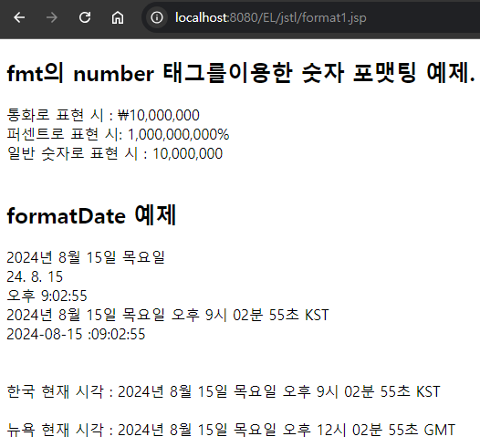 - JSTL 포매팅 라이브러리를 사용하면 쉽게 원하는 형태로 숫자나 문자열을 표시할 수 있다.