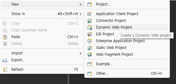 - 프로젝트 생성 시 Dynamic Web Project를 선택하고