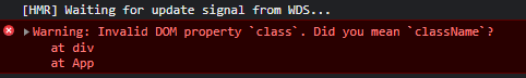 - 이전에는 class로 CSS 클래스를 설정할 때 오류가 발생하고 CSS 클래스가 적용되지 않았는데, 리액트 v16 이상부터는 class를 classname으로 변환시켜 주고 경고를 띄운다.