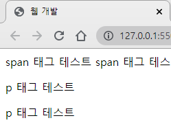 => span 태그는 한 줄에 이어서 출력되지만 p 태그는 줄바꿈이 일어난 후 출력된다.