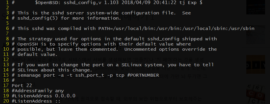 우선 SSH의 설정 파일을 수정하여 포트를 바꿔 보자.