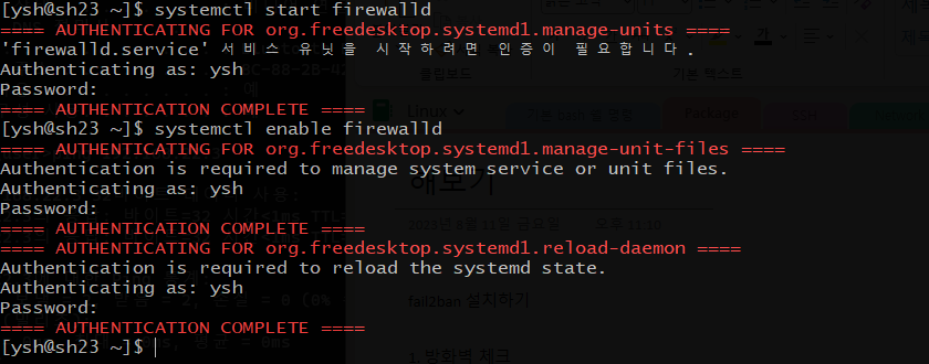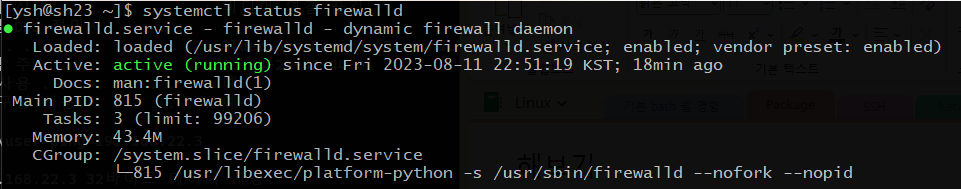 - fail2ban은 기본적으로 방화벽을 이용한다고 하는 것 같다. 그래서 방화벽 서비스가 동작하고 있는지 확인해 보자.