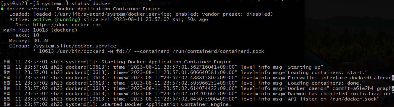 4. 도커 서비스 시작