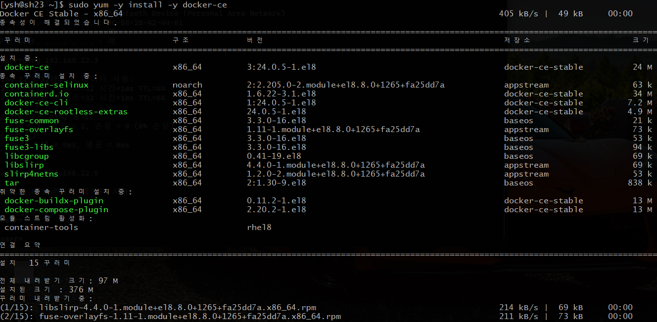 | $ sudo yum -y install -y docker-ce |