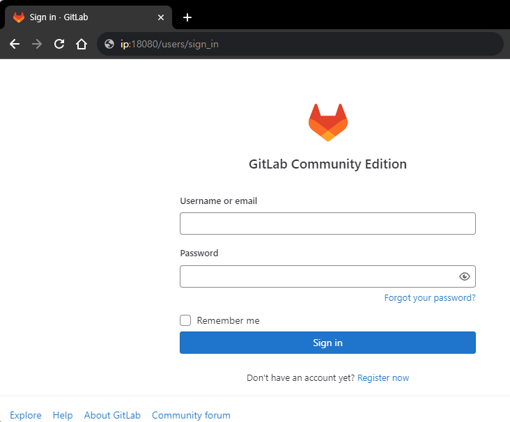 - gitlab을 설치한 호스트의 IP, docker-compose.yml에서 설정한 포트를 확인해 gitlab 웹 사이트에 접속해 보자.