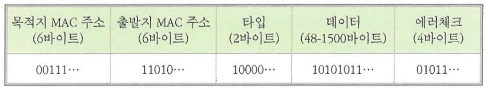 - 상대 장비에게서 수신한 신호의 처음 6바이트(48비트)는 목적지 MAC 주소로 인식한다.