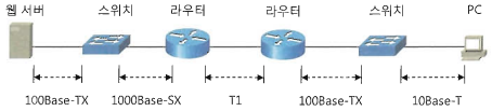 - 물리 계층의 동작범위는 인접한 장비까지이다.