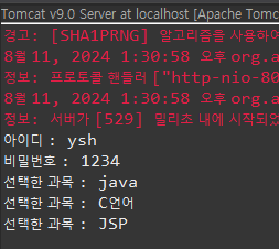 - 아이디와 비밀번호를 입력하고 [로그인] 버튼을 누른 후 IDE의 콘솔을 확인해 보면...