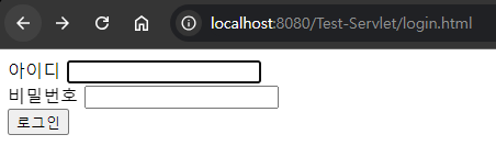 - 클래스 작성 후 톰캣을 실행시켜 브라우저에 주소창에 localhost:[port]/[project_name]/login.html 을 입력하여 접속한다.