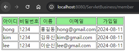 - DB 테이블 생성 및 레코드, MemberServlet.java, MeberVO.java 는 이전 글을 참고한다.