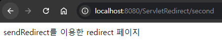 // sendRedirect() 메서드를 이용해 웹 브라우저에게 다른 서블릿인 second로 재요청한다.