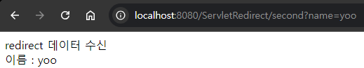 - redirect 방식을 이용하면 웹브라우저를 통해 다른 서블릿을 호출하면서 원하는 데이터를 전달할 수 있다.
