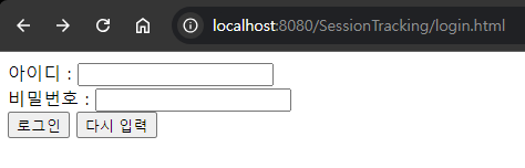 - 코드 작성 후 톰캣을 재시작하고 브라우저에 localhost:[port]/[project_name]/login.html 을 입력해 로그인 페이지에 접속한다.