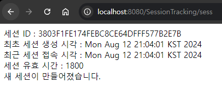 - 코드 작성 후 톰캣을 재시작하고 브라우저에 localhost:[port]/[project_name]/sess를 입력한다.