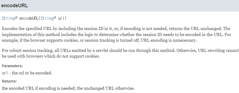 세션 ID를 포함하여 URL을 인코딩한다. 인코딩이 필요하지 않은 경우 URL을 변경하지 않고 반환한다.