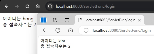 - 여러 브라우저를 사용해 로그인을 해 보면 로그인한 수만큼 접속자 수가 증가하는 것을 볼 수 있다.