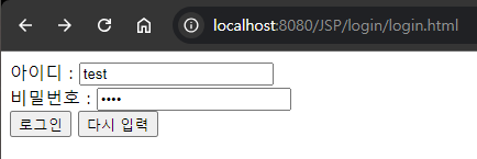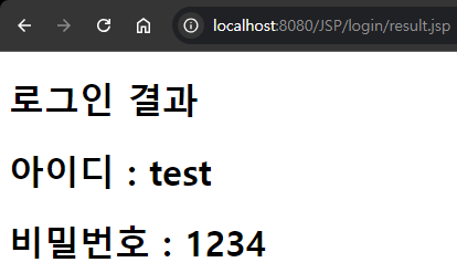- 로그인 화면에서 ID와 비밀번호를 입력한 후 JSP로 전송하여 출력한다.