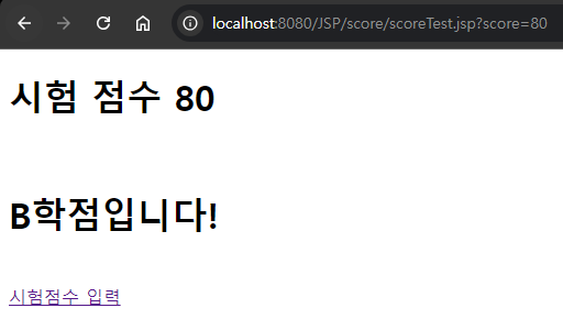- 다음은 입력한 점수에 따라 등급을 표시하는 JSP 예이다.
