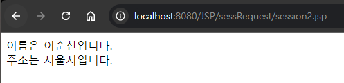- 코드 작성 후 브라우저에 localhost:[port]/[project_name]/sess 입력하여 접속하여 세션에 값을 바인딩시킨다.