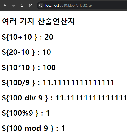 <h1>\${100 div 9 } : ${100 div 9 }</h1>
