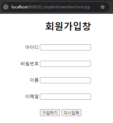 - 회원 가입창에서 회원 정보를 입력하고 JSP로 전송 시 getParameter() 메서드를 이용하지 않고 param 내장 객체를