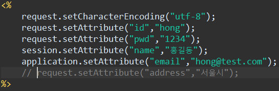 application.setAttribute("email","hong@test.com"); // application 내장 객체에 바인딩