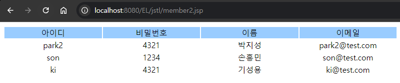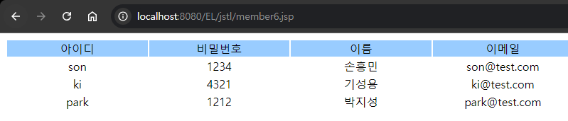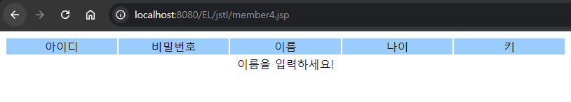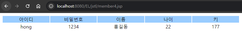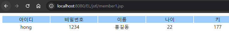 - "회원정보출력" 링크를 클릭하면 "/memer1.jsp" 페이지로 포워딩된다.