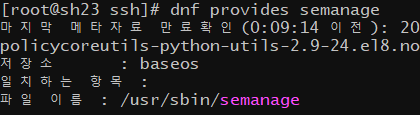 selinux 관련 포트 설정을 하려면 semanage 명령어를 사용하는 것 같은데, 해당 명령어를 찾을 수 없다는 문구를 보았다...