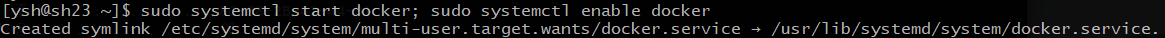 | $ sudo systemctl start docker; sudo systemctl enable docker |
