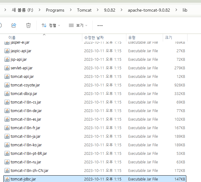 ( tomcat dbcp는 tomcat 폴더 / lib 안의 tomcat-dbcp.jar 파일을 이용 )