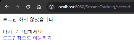 - 만약 login.html 페이지에서 로그인을 하지 않고 /second 로 바로 요청을 하게 되면 다음과 같은 페이지가 나타난다.